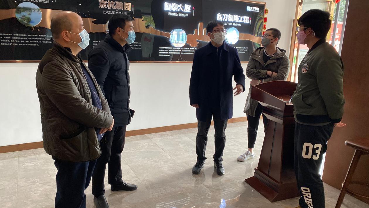 2月24日上午,城控集團副總經理方璇智帶隊赴置業(yè)公司九境融園項目部、九境融園售樓處、頤和醫(yī)療健康中心項目部,督查建筑工地復工、疫情防控和安全生產工作。