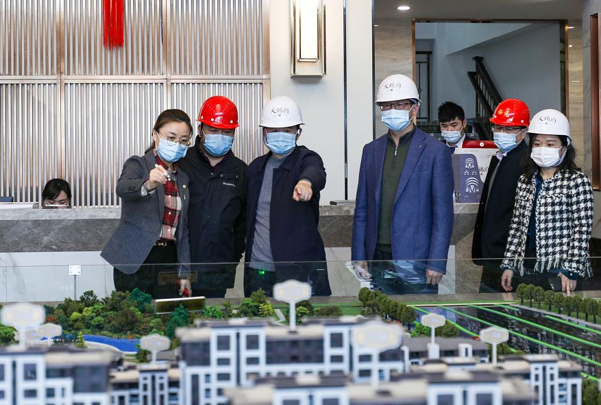 葉善祥一行先后實地查看了天瑞府、揚州頤和醫(yī)療健康中心、九境融園項目建設(shè)情況,詳細了解了置業(yè)公司關(guān)于疫情防控工作、復(fù)工復(fù)產(chǎn)、施工進度情況。隨后召開會議,進一步研究項目進度安排、存在的問題及工作舉措。