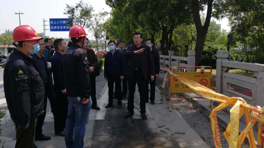 何金發(fā)一行先后檢查了揚(yáng)菱路加氣站、南通西路燃?xì)夤芫W(wǎng)改造現(xiàn)場(chǎng)和潤(rùn)揚(yáng)路快速化互通立交施工現(xiàn)場(chǎng)。