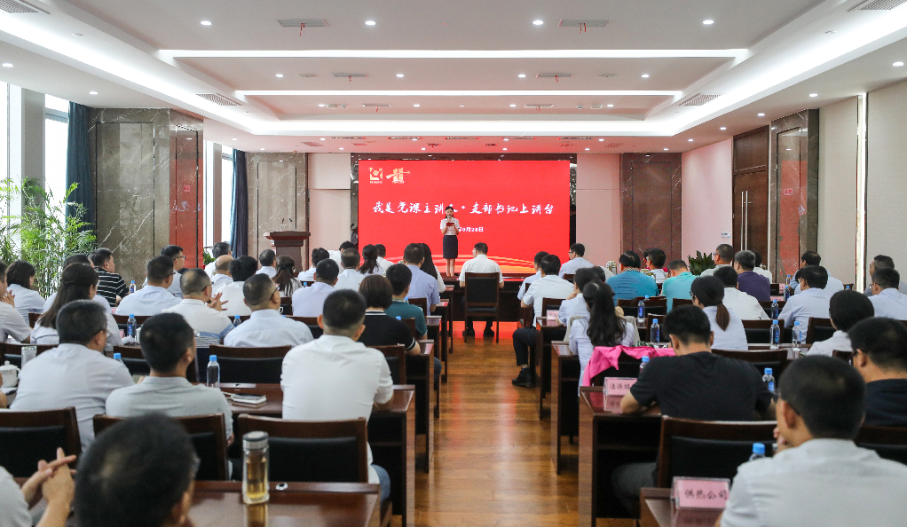 為深入學(xué)習(xí)貫徹習(xí)近平新時代中國特色社會主義思想,鞏固拓展“不忘初心、牢記使命”主題教育成果,動員全集團上下掀起“比學(xué)趕超”熱潮,9月25日下午,集團黨委舉辦了“我是黨課主講人?支部書記上講臺”學(xué)習(xí)宣講競賽活動,市國資委黨委副書記張偉、市委組織部組織處處長孫明、市委宣傳部理論處處長李鎮(zhèn)風(fēng)、市委黨校培訓(xùn)處處長丁健應(yīng)邀出席活動并擔(dān)任評委,集團領(lǐng)導(dǎo)班子成員、中層干部、下屬單位黨組織主要負(fù)責(zé)人、分管負(fù)責(zé)人、基層黨支部書記、黨務(wù)部門負(fù)責(zé)人及黨員代表近100人參加了活動。