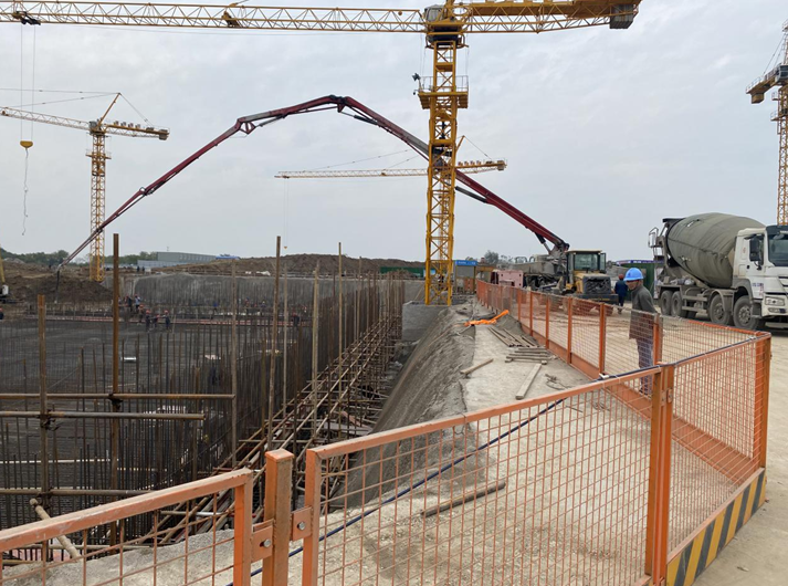 10月19日凌晨3點(diǎn),隨著最后一車混凝土出泵,持續(xù)運(yùn)轉(zhuǎn)了13個(gè)小時(shí)的泵車停止了轟鳴。經(jīng)過(guò)項(xiàng)目部全體成員的共同努力,北山污水處理廠一期工程主體構(gòu)筑物AAO生化池一號(hào)片區(qū)底板澆筑工作順利完成,廠區(qū)內(nèi)主體結(jié)構(gòu)全面施工的第一槍正式打響。