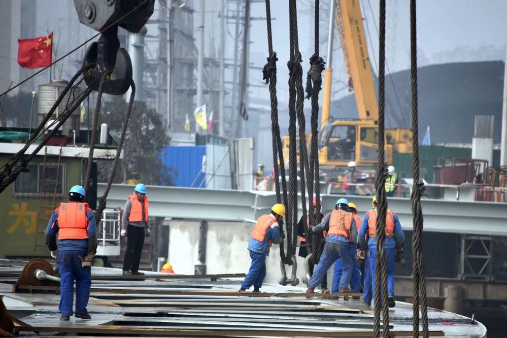 跨京杭運河大橋施工采用“先拱后梁”的順序。拱肋的安裝看似空中搭積木,實則困難重重。每塊鋼結(jié)構(gòu),都要先于武漢加工制作基地制成小節(jié)段后經(jīng)水上運輸至泰州拼裝基地,在泰州完成預(yù)拼和加固焊接成大吊裝節(jié)段后才抵送施工現(xiàn)場。為確保大橋安全高效施工,項目部克服了高空吊裝施工難度大、安裝精度要求高、施工安全風(fēng)險高、封航時間限制等困難,嚴(yán)格按照標(biāo)準(zhǔn)化施工規(guī)范要求,精心組織,強化管理,狠抓工序銜接,逐一擊破難點,確保工程整體有序推進(jìn)。