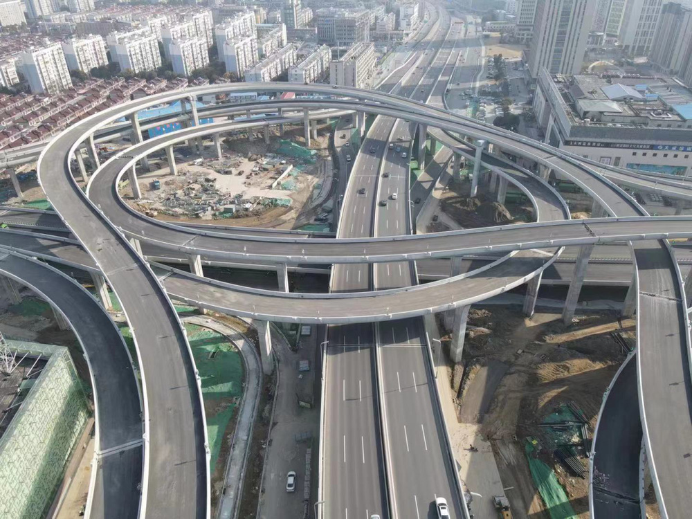 潤(rùn)揚(yáng)路快速化改造(潤(rùn)揚(yáng)路-江陽路互通立交)工程為五層渦輪型全互通立交,是揚(yáng)州市快速路網(wǎng)重大節(jié)點(diǎn)項(xiàng)目。工程主線高架橋北起百吉巷,南至牧羊路,共15聯(lián)48跨,全長(zhǎng)1.52公里;8條互通匝道共58聯(lián)162跨,全長(zhǎng)5.04公里。工程橋梁瀝青攤鋪面積總計(jì)達(dá)9.4萬平方米。