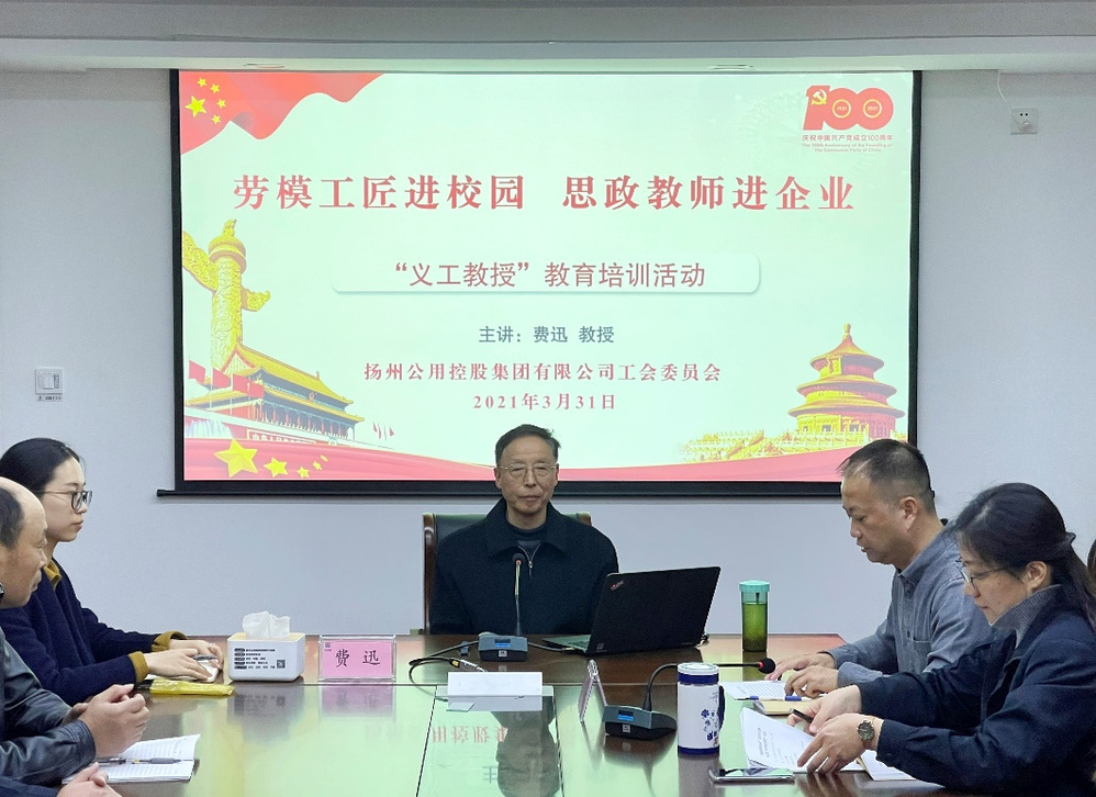為慶祝建黨100周年,深入開展黨史學(xué)習(xí)教育,3月31日下午,公用控股集團(tuán)舉辦“思政教師進(jìn)企業(yè)”活動,特邀揚(yáng)州大學(xué)馬克思主義學(xué)院教授費(fèi)迅作專題講座,公司全體干部員工參加活動。