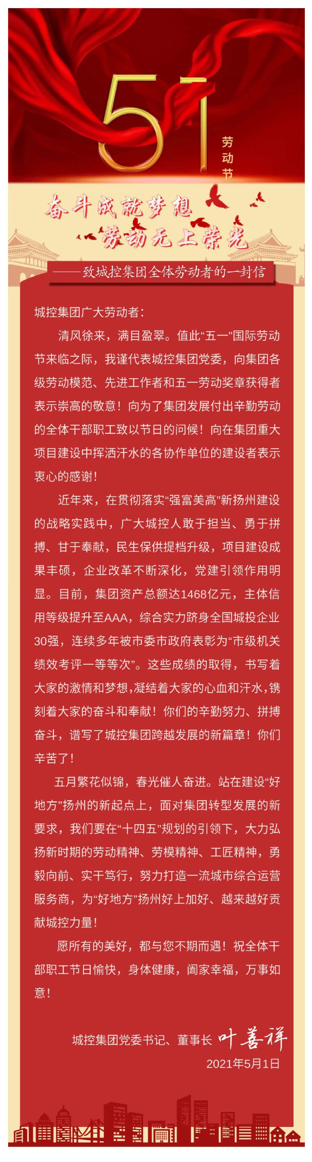 奮斗成就夢想,勞動無上光榮——致城控集團(tuán)全體勞動者的一封信