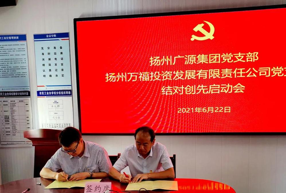 為落實(shí)黨史學(xué)習(xí)教育要求,進(jìn)一步推動快速路供電桿線遷改工作,6月22日上午,在潤揚(yáng)路快速化改造工程(百吉巷-同泰路北)項(xiàng)目部,萬福公司黨支部與揚(yáng)州廣源集團(tuán)管理黨支部開展了結(jié)對創(chuàng)先活動啟動儀式,共同組建黨員服務(wù)隊(duì),助力快速路工程建設(shè)。