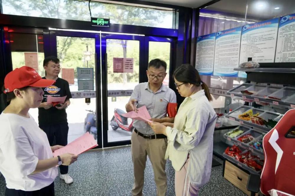 黨員志愿者們兵分兩路,一部分黨員志愿者在演練現(xiàn)場幫助工作人員進(jìn)行現(xiàn)場引導(dǎo)與疏導(dǎo),另外一部分黨員志愿者則前往街區(qū)內(nèi)的各家餐飲門店,上門進(jìn)行消防安全知識宣傳講解和消防安全知識宣傳資料的發(fā)放。