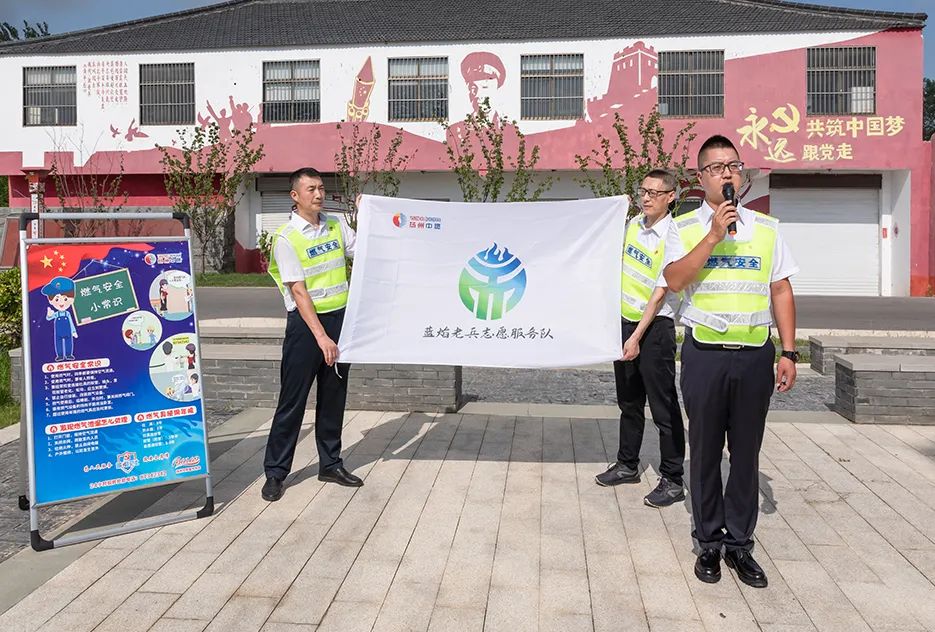 在展館廣場(chǎng),雙方的退役老兵代表們面對(duì)黨旗行莊嚴(yán)軍禮,重唱鏗鏘軍歌,《我是一個(gè)兵》《打靶歸來(lái)》的高亢旋律響徹云霄,表達(dá)了退役老兵們退伍不褪色、永葆軍人本色,在平凡的崗位上為國(guó)家建設(shè)盡綿薄之力的豪邁心情?;顒?dòng)現(xiàn)場(chǎng),“藍(lán)焰老兵”還開(kāi)展了安全使用天然氣專題宣講,發(fā)放天然氣安全使用手冊(cè)。