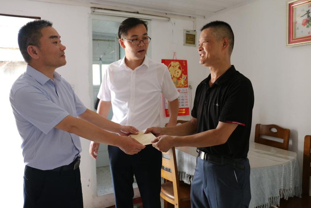 黨員們來到困難退伍老兵家中,與老兵親切交談,聆聽他講述軍旅故事,并且詳細了解他目前的身體狀況、生活情況,得知2015年他在家不慎跌倒導致腦溢血,加上高血壓需要長期服藥,生活相對困難。黨員們送上了防暑用品、生活用品及慰問金,感謝他所作的貢獻,同時囑咐要保持積極樂觀心態(tài),好好保重身體。