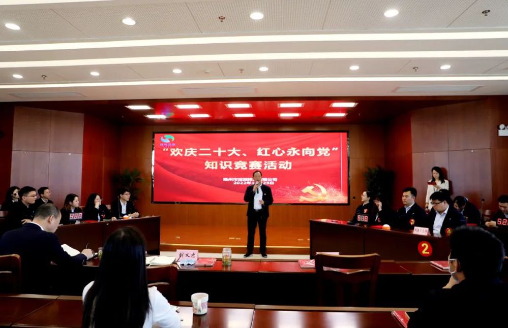 為熱烈慶祝黨的二十大勝利閉幕,10月25日下午,揚(yáng)州市潔源排水公司組織開展“歡慶二十大、紅心永向黨”知識競賽活動(dòng)。