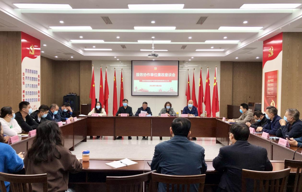 為持續(xù)抓好公司黨風(fēng)廉政建設(shè)工作,進(jìn)一步提升廉政風(fēng)險(xiǎn)防控意識,全面落實(shí)從嚴(yán)治黨主體責(zé)任,根據(jù)集團(tuán)廉政工作有關(guān)要求,10月26日,資產(chǎn)公司組織召開了服務(wù)協(xié)作單位廉政座談會。公司聯(lián)合黨支部支委班子成員,相關(guān)處(部)室和物業(yè)公司負(fù)責(zé)人,公司紀(jì)檢監(jiān)察員以及20家服務(wù)協(xié)作單位負(fù)責(zé)人(代表)參加了座談會。