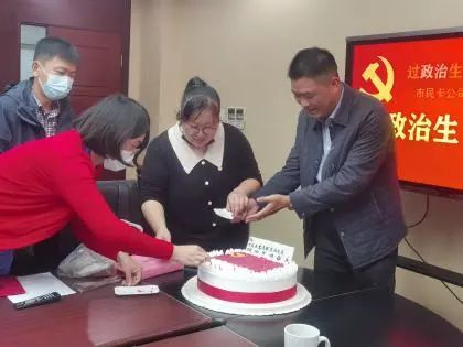 活動中,黨員代表回顧了自己的入黨經(jīng)歷,分享了自己的心路歷程,并表示在今后的工作和生活中,將銘記黨員身份,牢記入黨誓詞,不忘初心,永葆本色,做一名合格黨員。支部書記代表市民卡黨支部為8名10歲以上黨齡的黨員送上“生日”祝福,頒發(fā)生日賀卡,并送上“生日”蛋糕。希望每名黨員都要以過政治生日為契機(jī),給自己加油、充電,補(bǔ)精神之“鈣”,堅定理想信念,增強(qiáng)政治定力,做一名在工作和學(xué)習(xí)中充分發(fā)揮先鋒模范作用的合格共產(chǎn)黨員。