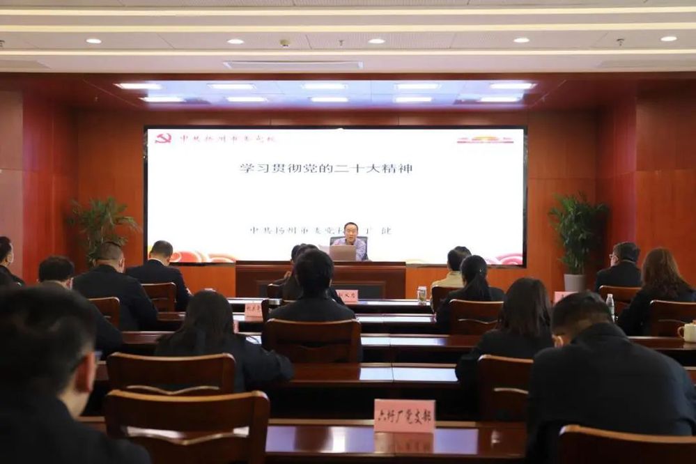 為深入學(xué)習(xí)和貫徹黨的二十大精神,11月1日下午,潔源排水公司邀請(qǐng)揚(yáng)州市委黨校培訓(xùn)處處長(zhǎng)丁健,為公司全體黨員開展黨的二十大精神專題黨課。