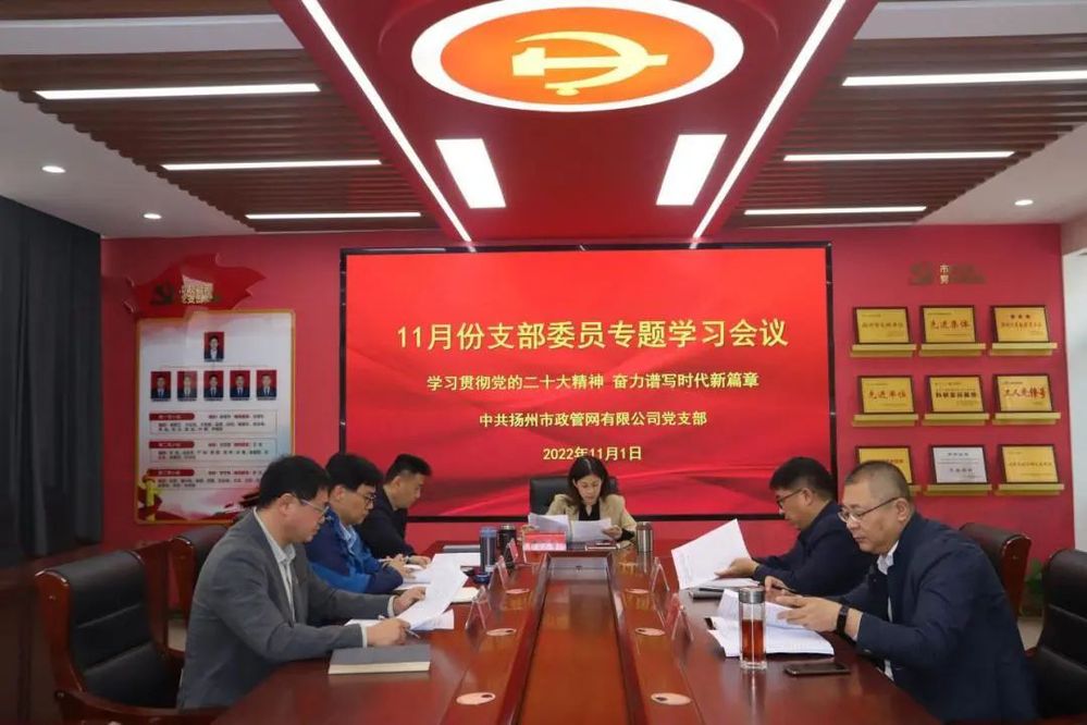 11月1日下午,揚(yáng)州市政管網(wǎng)公司黨支部召開(kāi)11月支部委員專題學(xué)習(xí)會(huì),認(rèn)真?zhèn)鬟_(dá)學(xué)習(xí)黨的二十大精神,并對(duì)企業(yè)學(xué)習(xí)宣傳貫徹黨的二十大精神作出安排部署。