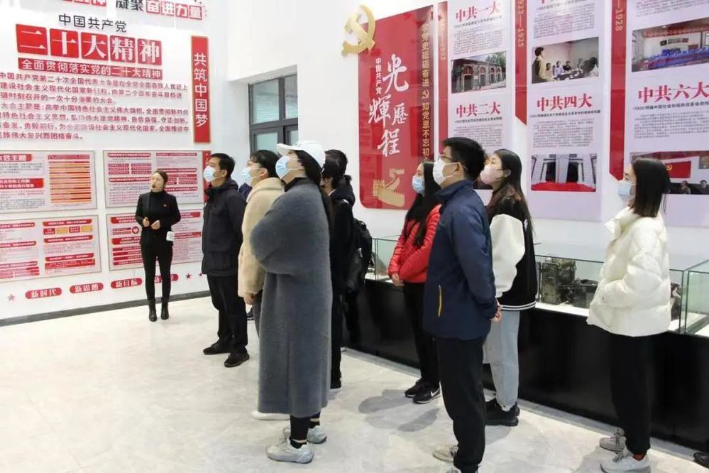 在黨史文化公園初心館,講解員借助VR科技,通過虛擬與現(xiàn)實相結合的手段,帶領大家回顧了中國共產(chǎn)黨、中國共青團的創(chuàng)建與奮斗的光榮歷程,重點學習了黨的一大到二十大精神。在“長征——中國工農(nóng)紅軍歷史事件”的圖文介紹下,大家“重走”長征路,重溫了革命事跡與老一輩黨員同志們艱苦奮斗的革命歷程。鮮紅的黨旗下,全體黨員重溫入黨誓詞,進一步堅定了入黨使命、奮斗初心。