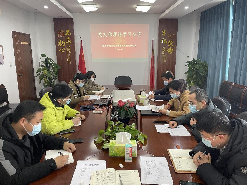 12月14日上午,古城保護(hù)公司召開(kāi)黨支部(擴(kuò)大)理論學(xué)習(xí)會(huì)。公司黨支部書(shū)記、董事長(zhǎng)梁玉榮主持會(huì)議并講話。公司全體員工參加會(huì)議。