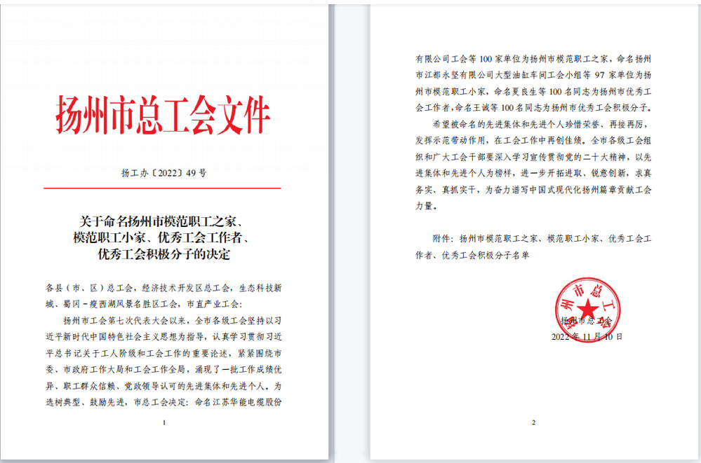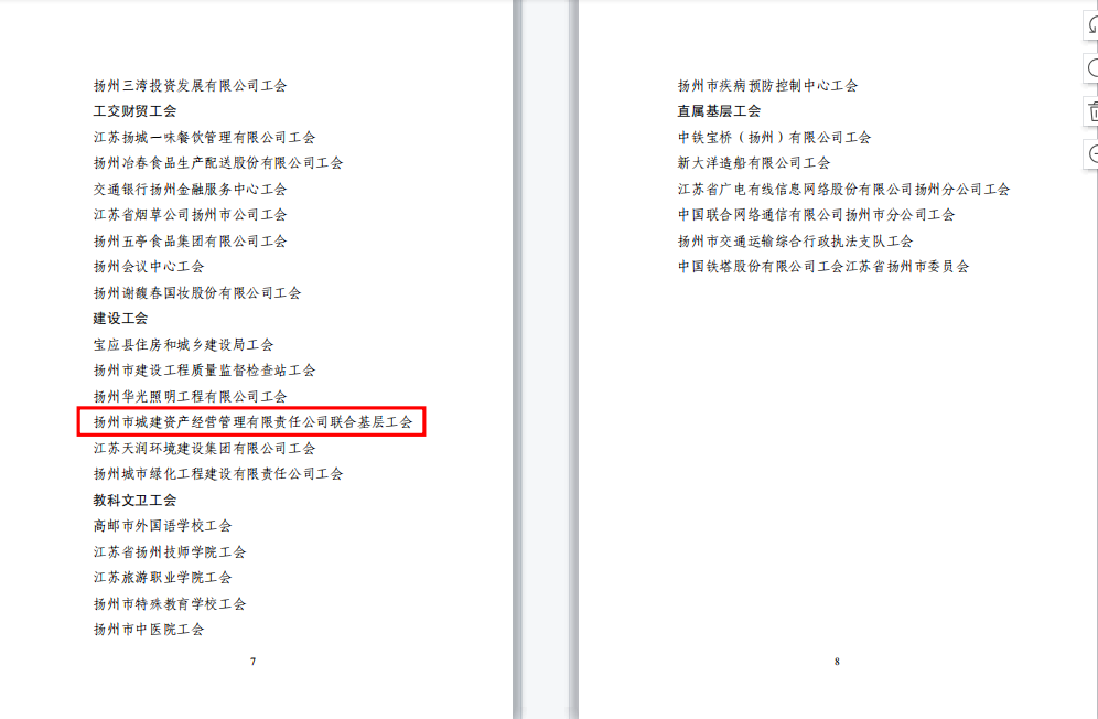 2022年,城建資產(chǎn)聯(lián)合基層工會(huì)緊緊圍繞公司年度中心任務(wù),團(tuán)結(jié)帶領(lǐng)廣大干部職工,積極致力于企業(yè)文化建設(shè)發(fā)展,以為職工謀福利為己任,扎實(shí)履行工會(huì)職能,關(guān)心關(guān)愛(ài)職工身心健康,秉承“干實(shí)事、辦好事、解難事”的宗旨,從“心”出發(fā),真正做職工貼心的“娘家人”。一份耕耘一份收獲,在全體職工齊心協(xié)力的努力下,城建資產(chǎn)聯(lián)合基層工會(huì)被揚(yáng)州市總工會(huì)授予“揚(yáng)州市模范職工之家”榮譽(yù)稱號(hào)。