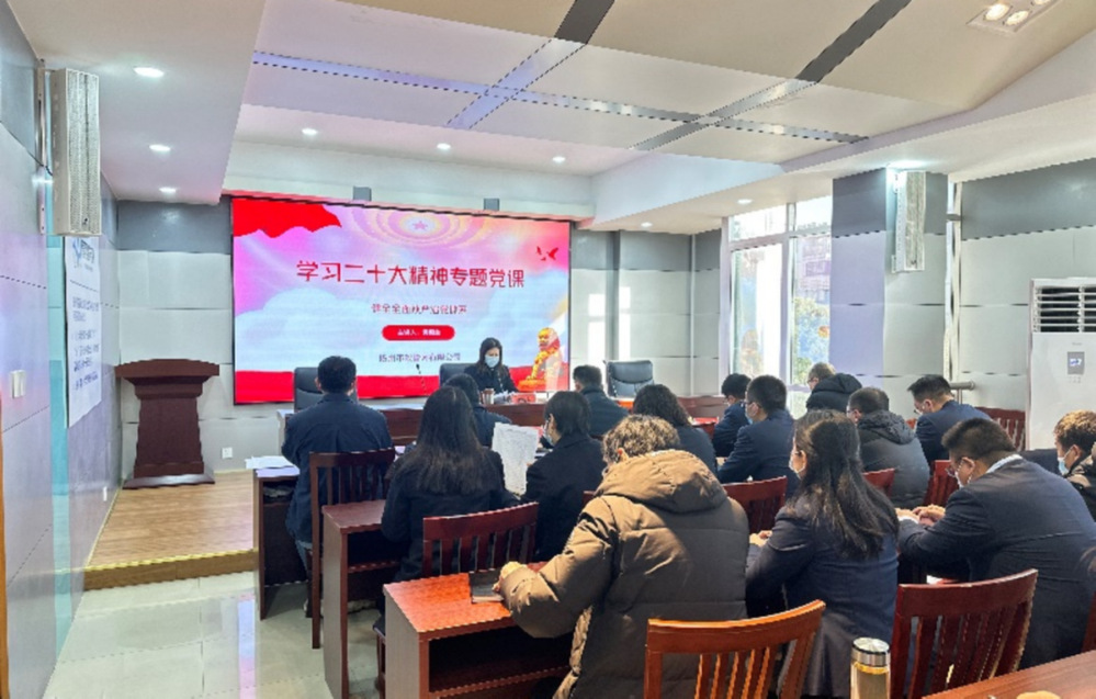 12月14日,管網(wǎng)公司黨支部召開全體黨員大會,黨支部書記、總經(jīng)理黃棚蘭同志以“深入學(xué)習(xí)貫徹黨的二十大精神,切實(shí)推進(jìn)全面從嚴(yán)治黨”為題為全體黨員開展宣講。