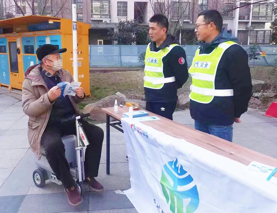 在社區(qū)廣場(chǎng),志愿者們?yōu)樯鐓^(qū)居民發(fā)放燃?xì)獍踩褂檬謨?cè),講解燃?xì)獍踩褂弥R(shí)及注意事項(xiàng),走進(jìn)孤寡老人家中開(kāi)展燃?xì)獍踩珯z查,免費(fèi)更換不銹鋼波紋管。