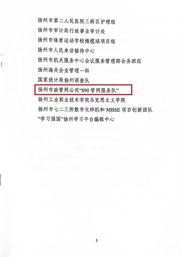 近日,市婦聯(lián)、市婦女“巾幗建功”活動(dòng)領(lǐng)導(dǎo)小組聯(lián)合表彰了一批揚(yáng)州市“巾幗文明崗”和“巾幗建功標(biāo)兵”。揚(yáng)州市政管網(wǎng)有限公司“890管網(wǎng)服務(wù)隊(duì)”榮獲“巾幗文明崗”稱號(hào)。
