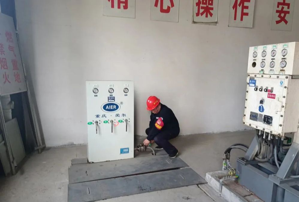 演練圍繞“消除安全隱患,筑牢安全防線”主題,主要模擬壓縮機(jī)間內(nèi)干燥塔閥門突發(fā)大量燃?xì)庑孤膊槿藛T發(fā)現(xiàn)后立即向當(dāng)班班長(zhǎng)匯報(bào),班長(zhǎng)立即啟動(dòng)應(yīng)急處置預(yù)案,組織人員關(guān)停所有站內(nèi)設(shè)備,切斷氣源,疏散現(xiàn)場(chǎng)人員;同時(shí)在加氣站出入口設(shè)置警戒,禁止無(wú)關(guān)人員、車輛進(jìn)入。維修人員到達(dá)現(xiàn)場(chǎng)后,及時(shí)實(shí)施搶修作業(yè),經(jīng)專業(yè)儀器檢測(cè)確認(rèn)燃?xì)庑孤┕收吓懦?,解除警戒,恢?fù)正常運(yùn)營(yíng)。