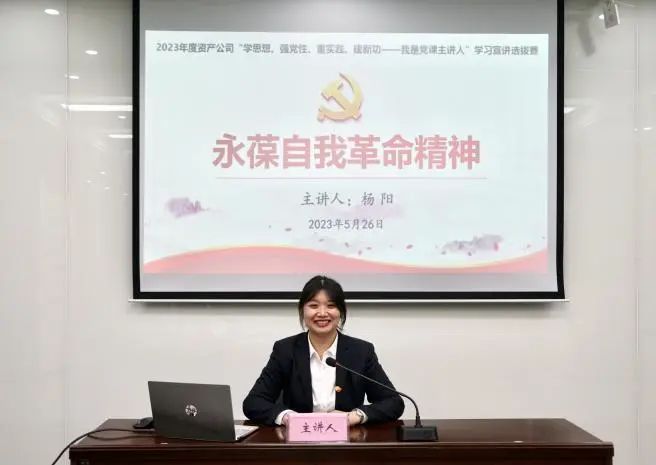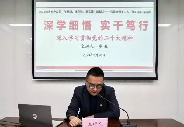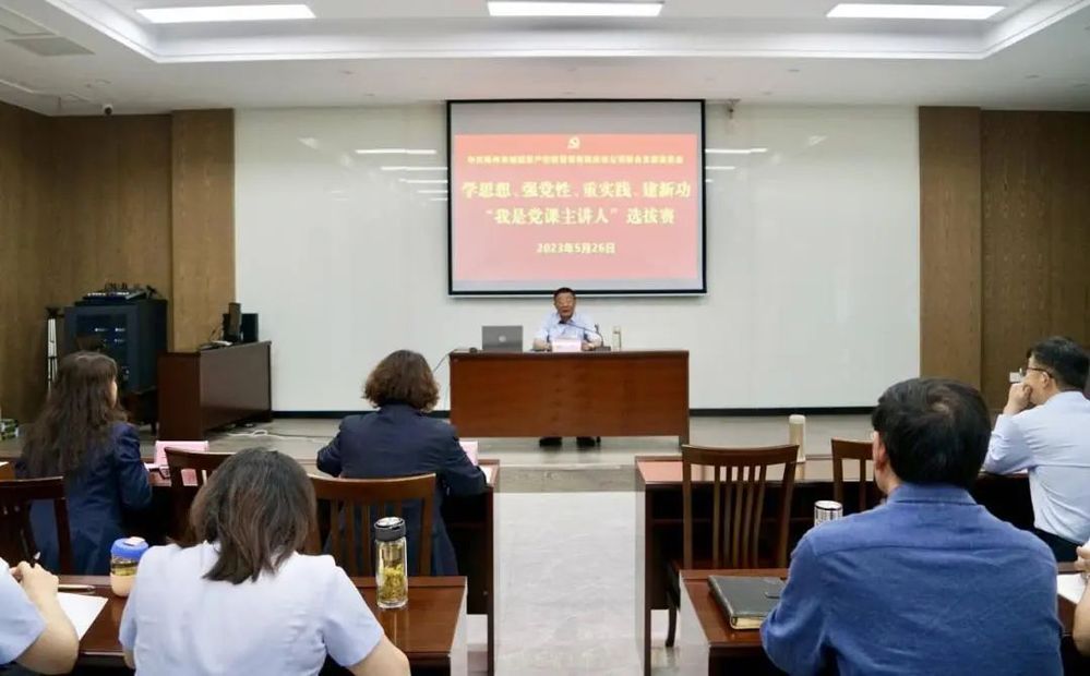 為深入學習貫徹習近平新時代中國特色社會主義思想和黨的二十大精神,引導廣大黨員干部提高黨性修養(yǎng),凝聚思想共識,推進資產公司高質量發(fā)展,5月26日下午,資產公司聯(lián)合黨支部開展了“學思想、強黨性、重實踐、建新功——我是黨課主講人”賽黨課活動。聯(lián)合黨支部全體黨員參加活動。