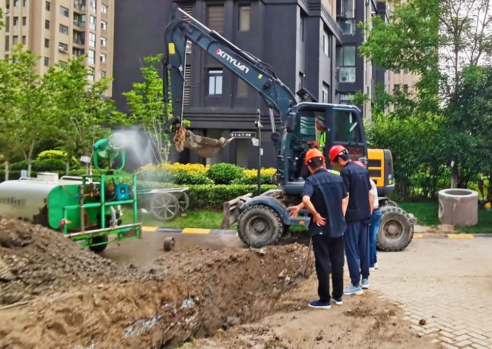 2023年6月3日15時(shí)30分,揚(yáng)州中燃公司24小時(shí)客服熱線接到工地監(jiān)護(hù)人員報(bào)修電話:君悅?cè)A府5幢附近,雨污水施工單位改造施工時(shí)將PE110低壓燃?xì)夤艿劳谄?,造成大量天然氣泄漏,?qǐng)立即通知維修人員趕赴現(xiàn)場(chǎng)搶修。接報(bào)后,公司立即按照應(yīng)急處置流程,安排生產(chǎn)運(yùn)營(yíng)部值班搶修人員趕赴現(xiàn)場(chǎng)。