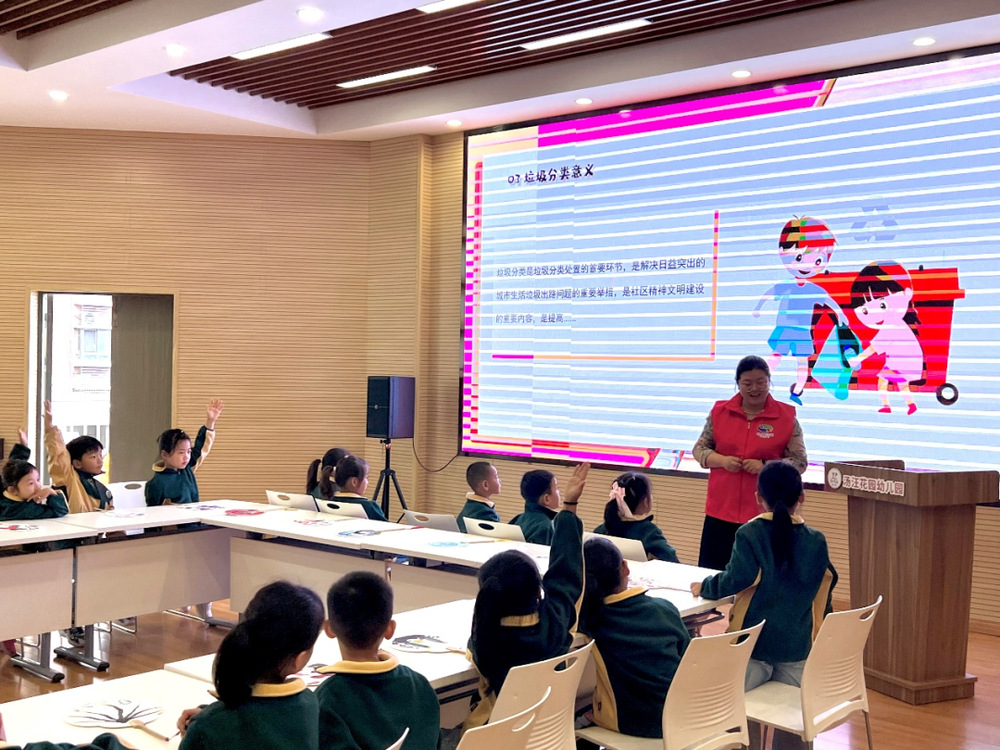 在我們?nèi)粘I钪校刻於紩a(chǎn)生大量的生活垃圾,對于垃圾分類這件事而言,它既是生活中的小事,也是關(guān)系到社會文明的大事。志愿者通過生動的圖片和視頻講解,讓孩子們學(xué)習(xí)到如何區(qū)分可回收垃圾、廚余垃圾、有害垃圾和其它垃圾。引導(dǎo)孩子們認(rèn)識垃圾桶上的標(biāo)志,學(xué)習(xí)垃圾分類的方法,孩子們都非常感興趣,紛紛表示回家后要教爸爸媽媽做好垃圾分類,參與環(huán)境保護,貢獻(xiàn)自己的一份力。
