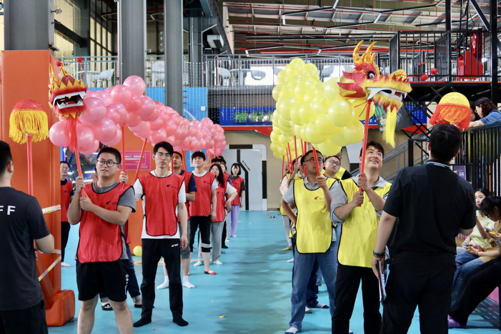 通過破冰活動,工作人員帶領大家進行了活動前的熱身,并向大家介紹龍舟文化的由來和活動注意事項。比賽正式開始,兩支隊伍參賽隊員們團結一心,伴隨著咚咚咚的節(jié)奏鼓點聲奮棹爭先,一時間鼓聲、吶喊聲、加油聲此起彼伏,營造出團結、拼搏、奮進的難忘畫面。