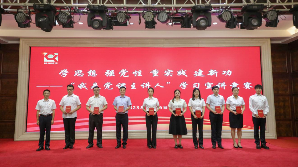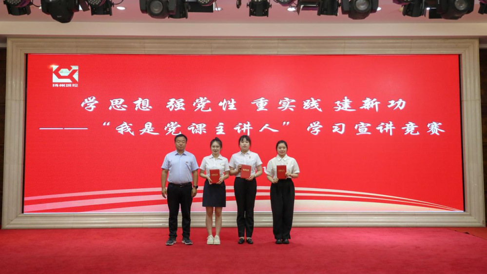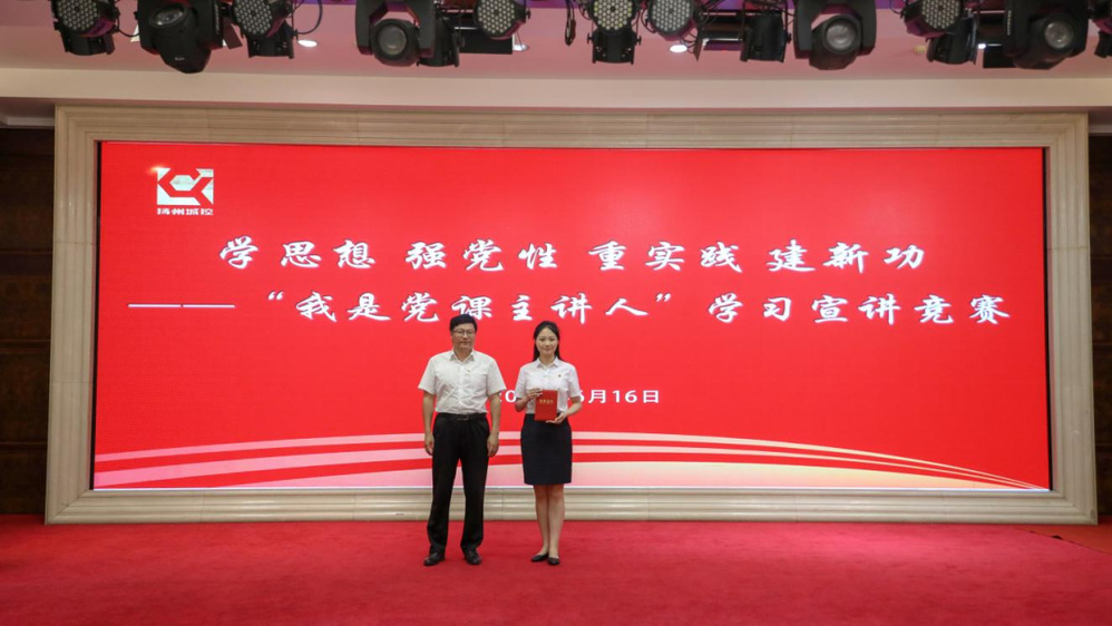 為進(jìn)一步推動(dòng)習(xí)近平新時(shí)代中國(guó)特色社會(huì)主義思想深入基層、深入人心,更好激勵(lì)廣大干部群眾在新時(shí)代新征程上踔厲奮發(fā)、勇毅前行,6月16日下午,集團(tuán)黨委舉辦了“學(xué)思想 強(qiáng)黨性 重實(shí)踐 建新功——我是黨課主講人”學(xué)習(xí)宣講競(jìng)賽。市委黨建辦副主任孫明,揚(yáng)州市職業(yè)大學(xué)黨委委員、宣傳部部長(zhǎng)花軍,市委黨校培訓(xùn)處處長(zhǎng)丁健,市國(guó)資委黨群處處長(zhǎng)徐根亮、集團(tuán)黨委副書(shū)記徐飛出席活動(dòng)并擔(dān)任評(píng)委。集團(tuán)領(lǐng)導(dǎo)班子成員、集團(tuán)機(jī)關(guān)黨支部書(shū)記、機(jī)關(guān)部室主要負(fù)責(zé)人、下屬單位黨組織主要負(fù)責(zé)人、分管負(fù)責(zé)人、基層黨務(wù)工作者約100人參加活動(dòng)。