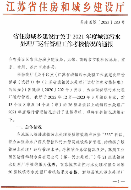 近日,從江蘇省住房和城鄉(xiāng)建設(shè)廳傳來喜訊,潔源排水公司六圩污水處理廠順利通過考核,喜獲“2021年度江蘇省優(yōu)秀污水處理廠”榮譽稱號,這是六圩污水處理廠繼2013、2015及2017年榮獲省廳考核優(yōu)秀之后,再次榮獲該殊榮。