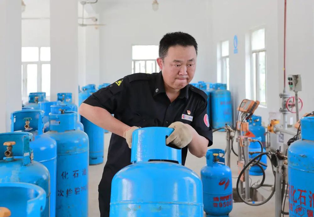 楊廟液化氣場站主要承擔主城區(qū)液化氣鋼瓶灌裝任務。2022年夏季高溫,灌裝量由平時的十幾噸,攀升至三十余噸,從大小五六百只鋼瓶,飆升到近兩千只。倪衛(wèi)國發(fā)揚退伍軍人的鋼鐵意志,在場站堅守近二十天,始終堅守在生產一線。倪衛(wèi)國在承擔日常灌裝管理工作的同時,主動向部門提出,由其負責所有液化氣槽車進氣工作與氣體分析化驗工作,竭盡所能保障氣源供應。灌裝工作期間,他對班組成員反復強調安全生產的重要性,指導員工嚴守操作規(guī)程,杜絕違章操作,堅持安全第一,嚴格把關,保障安全供氣工作的正常開展。