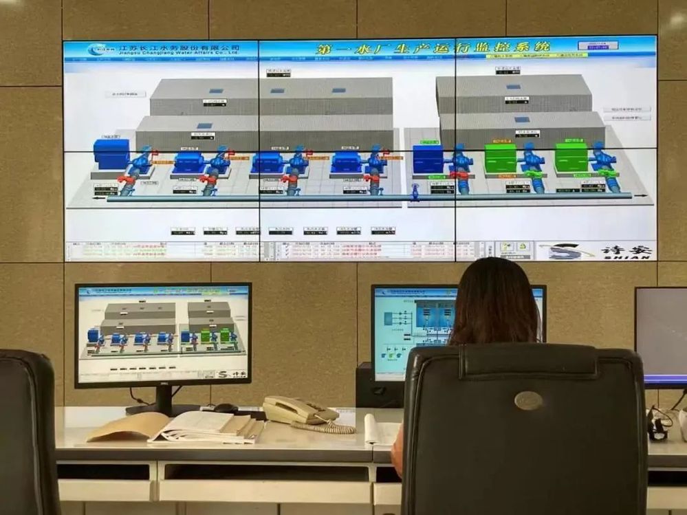 第一水廠中控室值班員在監(jiān)測(cè)機(jī)組數(shù)據(jù)