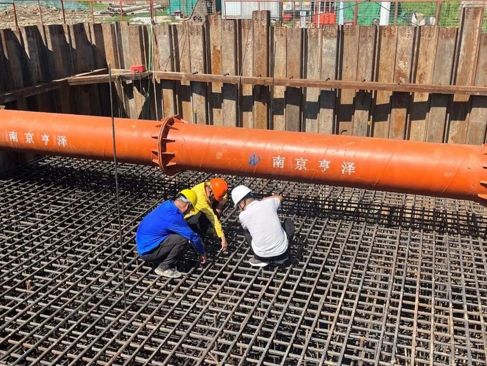 現(xiàn)場管理人員正在檢查鋼筋綁扎情況