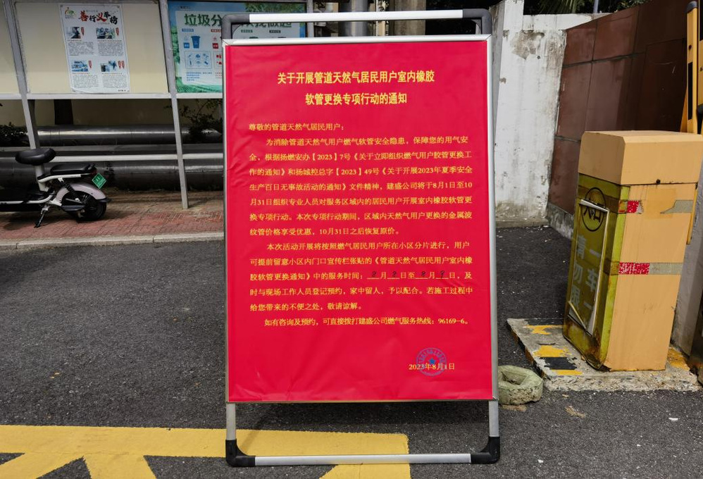 詳細制定計劃,推進專項行動。根據摸排結果,第一時間研究制定了橡膠軟管更換專項行動計劃。一方面,對即將進行更換的小區(qū),提前張貼通知,告知居民更換時間,提醒居民做好登記,有效提高入戶率、更換率。同時,充分利用業(yè)主群、微信公眾號、公司網站等,大力宣傳橡膠軟管更換的實際意義。另一方面,為提高居民更換積極性,公司在專項行動期間推出金屬波紋管更換限時優(yōu)惠活動,讓大家切實感受到政策“溫度”。
