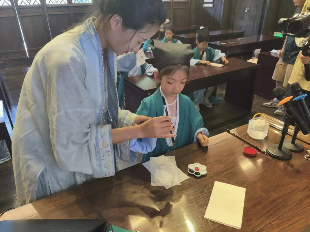 蒙學禮儀環(huán)節(jié)再現(xiàn)了阮元對于教育的重視。學員們端坐坐案前,聆聽著古時教學的內(nèi)容,感受了傳統(tǒng)蒙學的學習方式。通過此次親身體驗,大家更加深刻明白了阮元崇尚儒學、注重教育的人生態(tài)度。