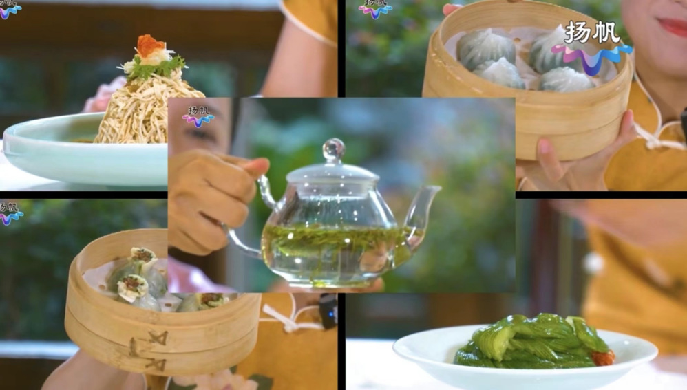 直播過程中,新聞女生帶領網友們“云”欣賞了揚州經典曲藝,領略了假山巧石、亭臺軒榭,感受了江南的溫婉;品嘗了長樂茶社的六珍包子、水晶包子、蟹黃湯包、千層油糕、翡翠燒賣、蝦肉蒸餃、裙邊燒麥等招牌早點。最后,重點介紹了早茶的實惠價格,得到了眾多網友們的點贊和期待。