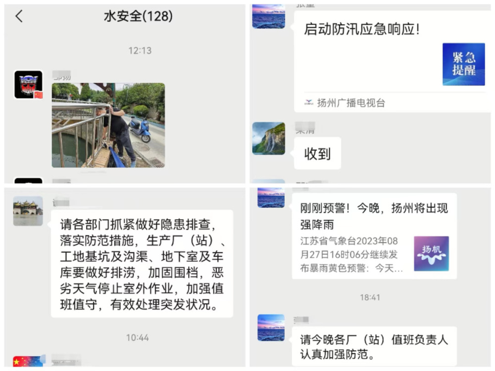 長江水務(wù)公司主要負(fù)責(zé)人和分管負(fù)責(zé)人連續(xù)在“中層管理”“水安全”微信工作群內(nèi)發(fā)布暴雨預(yù)警,提醒加強防范,強化調(diào)度指令,層層落實安全生產(chǎn)責(zé)任。長江水務(wù)公司各生產(chǎn)、服務(wù)、搶修和施工部門啟動應(yīng)急預(yù)案,備足備齊防汛物資,24小時保持人員在崗值守,及時上報所在區(qū)域的雨情、汛情和應(yīng)急處置的措施。