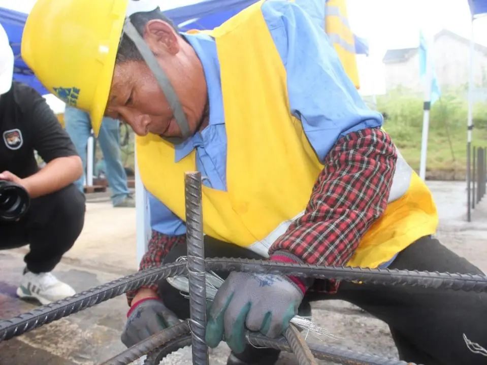 鋼筋工、焊工技能競(jìng)賽活動(dòng)中,選手們各個(gè)精神飽滿(mǎn),紛紛拿出看家本領(lǐng),全身心投入其中。焊工技能比賽現(xiàn)場(chǎng)焊花飛濺、弧光四溢,電光火石之間呈現(xiàn)出緊張激烈而又規(guī)范有序的氛圍;另一邊的鋼筋工技能競(jìng)賽選手們也不甘示弱,搶速度、追精度、比力度,細(xì)細(xì)鐵絲牢牢綁扎住的不只有鋼筋,更有他們彼此之間的默契。經(jīng)過(guò)2個(gè)小時(shí)的激烈比賽后,評(píng)委組對(duì)參賽選手的作品進(jìn)行了公平公正的評(píng)選,并為獲獎(jiǎng)選手頒發(fā)了獎(jiǎng)狀。