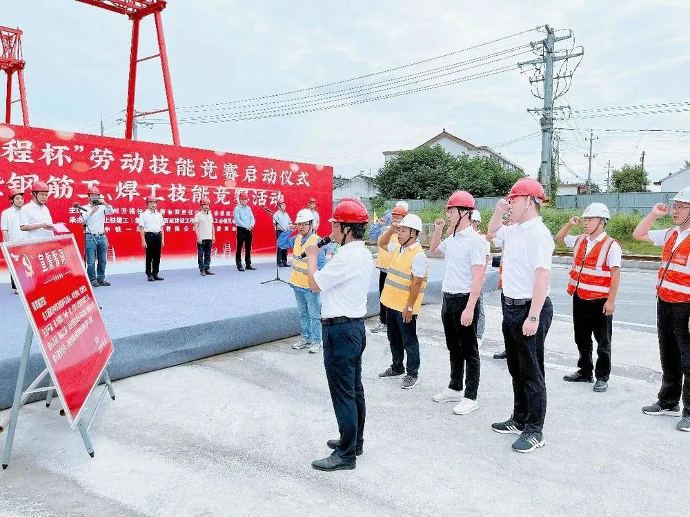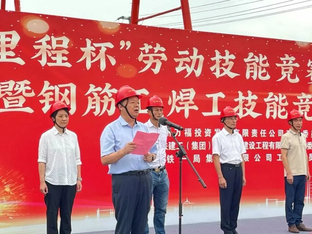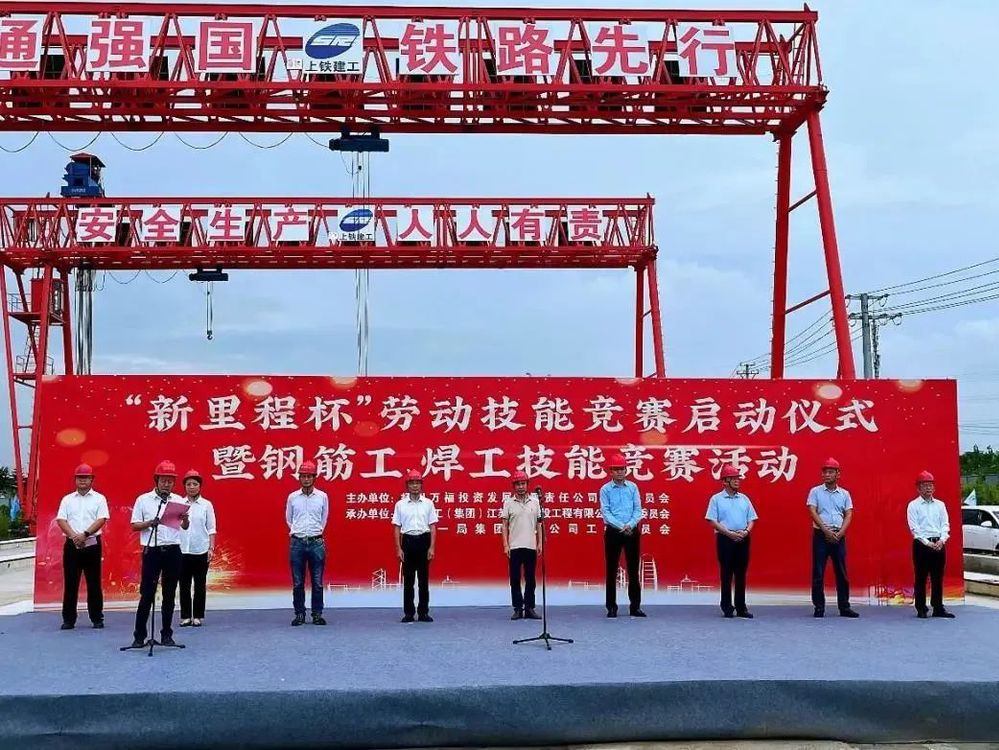 為充分調(diào)動(dòng)市級(jí)重點(diǎn)工程壁虎河大橋及運(yùn)河路北延項(xiàng)目參建單位及廣大員工工作積極性,不斷激發(fā)建設(shè)者勞動(dòng)熱情,保證項(xiàng)目在安全的前提下快速推進(jìn),2023年9月15日,由萬(wàn)福公司主辦的“新里程杯”勞動(dòng)技能競(jìng)賽啟動(dòng)儀式暨鋼筋工、焊工技能競(jìng)賽活動(dòng)在運(yùn)河路北延工程施工現(xiàn)場(chǎng)舉行。揚(yáng)州市總工會(huì)副主席伍瑞慶,揚(yáng)州市住建局黨委委員、副局長(zhǎng)肖波,揚(yáng)州市城控集團(tuán)黨委副書(shū)記徐飛,黨委委員、副總經(jīng)理季紅軍,揚(yáng)州市總工會(huì)建設(shè)產(chǎn)業(yè)工會(huì)主任范華,城控集團(tuán)直屬聯(lián)合基層工會(huì)主席徐紫月,萬(wàn)福公司領(lǐng)導(dǎo)班子成員,各參建單位相關(guān)負(fù)責(zé)人、工會(huì)主席、項(xiàng)目管理人員代表及工人代表參加了活動(dòng)。