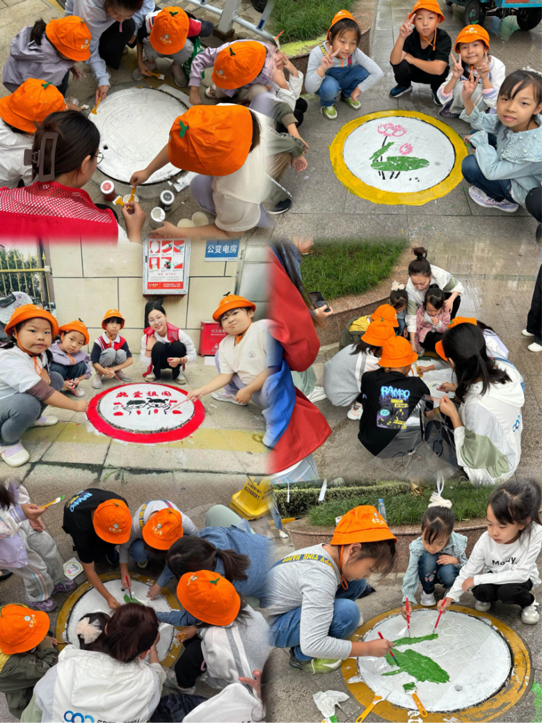 活動中,890管網(wǎng)服務(wù)隊(duì)隊(duì)員帶著孩子們簡單清理井蓋后,便開始提筆繪畫。勾勒線條、填充顏色,在不影響井蓋功能的前提下,以井蓋為“畫布”,利用井蓋的形狀和外貌特征,充分發(fā)揮想象力、創(chuàng)造力,融入低碳環(huán)保、垃圾分類等元素,大膽運(yùn)用顏料和畫筆,在圓圓的井蓋上畫出生動形象的創(chuàng)意繪畫。經(jīng)過齊心協(xié)力、共同努力,一個(gè)個(gè)不起眼、冷冰冰的井蓋煥然一新。小小井蓋變成了美不勝收的“景”蓋,給小區(qū)道路增添了生機(jī)和活力。