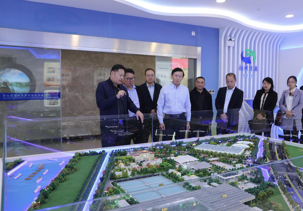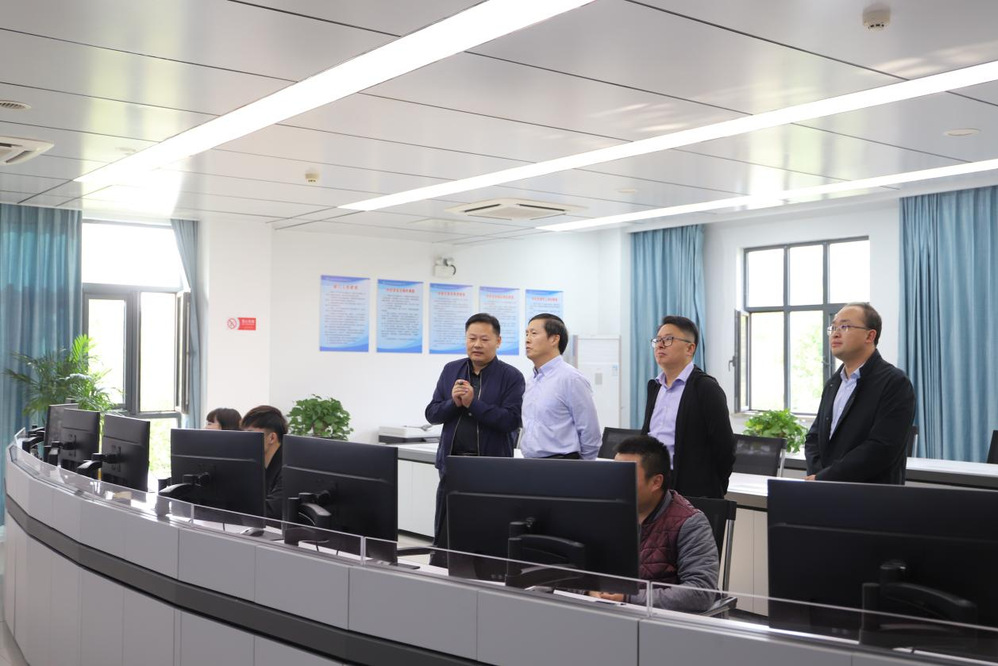 沈家寬一行首先參觀了潔源環(huán)境公司綜合環(huán)保展廳,聽取了市區(qū)污水處理廠建設和運行情況的匯報,并現(xiàn)場參觀了湯汪污水處理廠中央控制室,調(diào)研組一行對湯汪污水處理廠的穩(wěn)定優(yōu)質(zhì)運行表示了肯定。