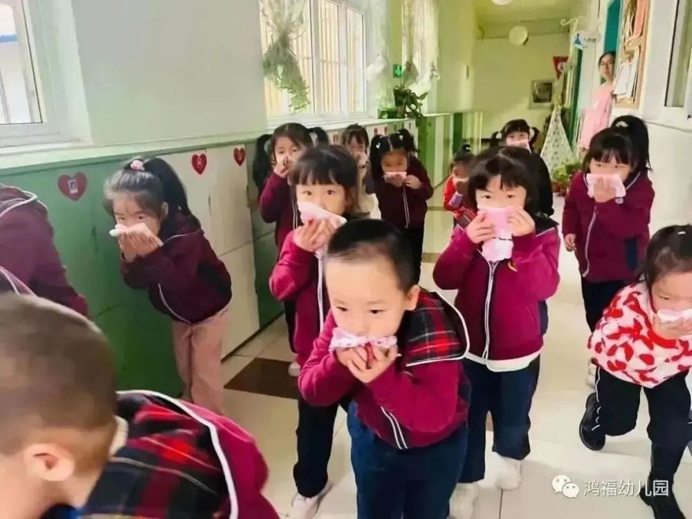 伴隨著警報(bào)聲的響起,消防演練正式開始。各班任課老師立刻停止教學(xué),迅速組織幼兒沿安全逃生路線進(jìn)行疏散,引導(dǎo)幼兒用濕毛巾捂住口鼻、沿墻角邊彎腰俯身、有序撤離。在疏散途中,孩子們行動(dòng)敏捷,不搶道不慌張,秩序井然。