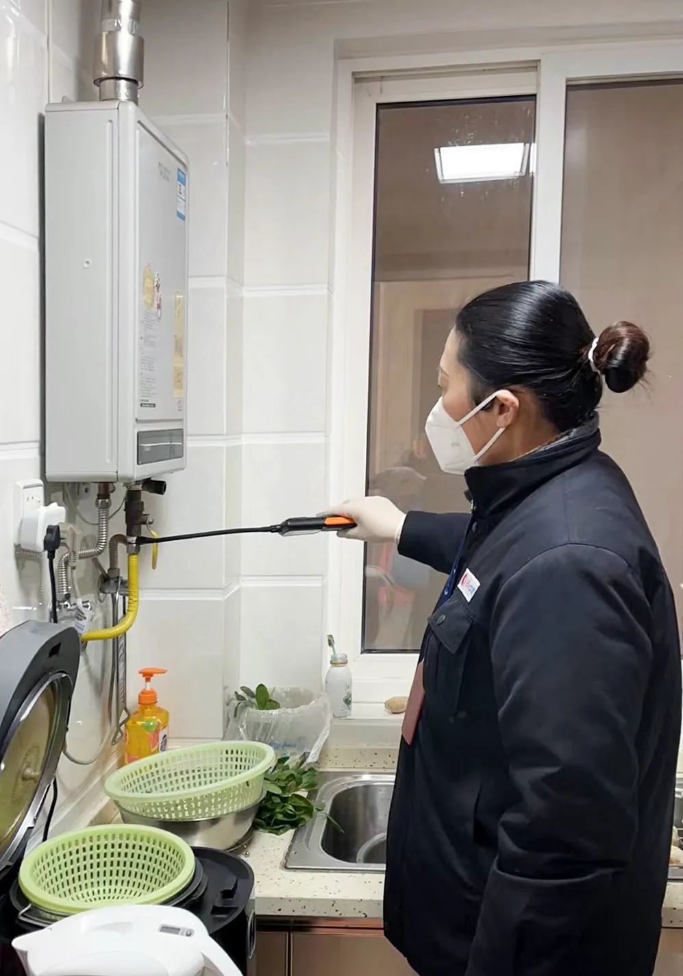 有著8年從業(yè)經(jīng)驗(yàn)的戴潔,對(duì)待燃?xì)獍矙z工作特別嚴(yán)謹(jǐn)。按照安檢流程,她從用戶廚房的第一道閥門開始仔細(xì)檢測(cè)管道是否有異常,接口處是否有漏點(diǎn),燃?xì)庠罹?、燃?xì)鉄崴魇欠癯谑褂??!皺z測(cè)儀不響就沒問題,如果連續(xù)發(fā)出‘嘀嘀嘀’的報(bào)警聲就說明有泄漏,發(fā)現(xiàn)漏氣要立即報(bào)修,確保安全”,戴潔邊說邊示范,同時(shí)向用戶宣傳普及燃?xì)獍踩R(shí)和燃?xì)庑孤?yīng)急處置措施,叮囑用戶一旦發(fā)現(xiàn)燃?xì)庑孤瑧?yīng)打開門窗,切斷室內(nèi)燃?xì)饪傞y,室內(nèi)嚴(yán)禁動(dòng)火和動(dòng)電源,到室外撥打燃?xì)鈭?bào)修電話,幫助用戶規(guī)范用氣、安全用氣。