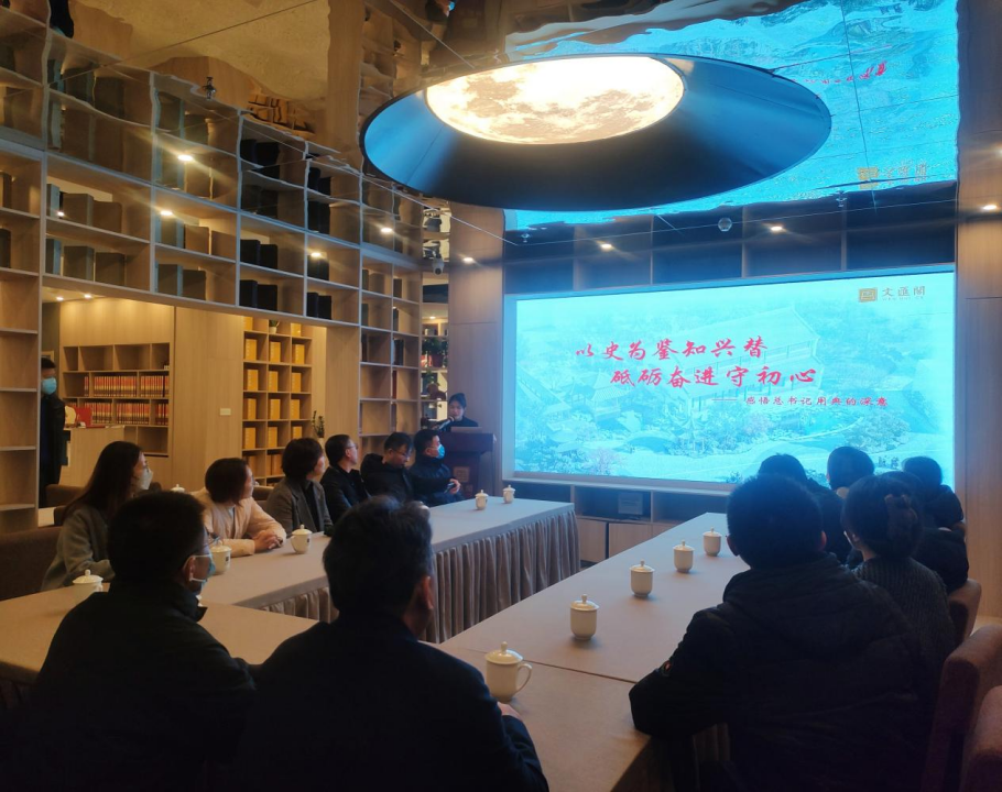在講解員的帶領(lǐng)下,大家參觀了一樓歷史文化展陳區(qū),通過“依靠學(xué)習(xí),走向未來”主題學(xué)習(xí)平臺,學(xué)習(xí)了“信念篇”“勸學(xué)篇”“修身篇”“齊家篇”“民本篇”“勤廉篇”六個(gè)篇章的相關(guān)內(nèi)容,學(xué)習(xí)感悟習(xí)近平總書記在系列重要講話中所引用的《四庫全書》中的經(jīng)典語句,深刻領(lǐng)悟習(xí)近平總書記關(guān)于黨風(fēng)廉政建設(shè)和反腐敗斗爭的重要論述。隨后,文匯閣青年黨員以《以史為鑒知興替 砥礪奮進(jìn)守初心》為題為大家上了一堂生動(dòng)的專題黨課。