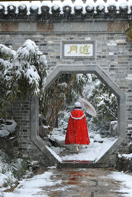 大雪覆蓋了瓦頂巷尾、城樓墻面、燈籠乃至樹枝,雪的作品終于完成了。