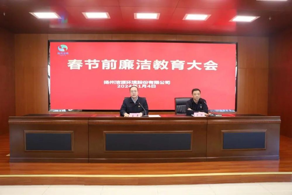 1月4日下午,潔源環(huán)境公司召開春節(jié)前廉潔教育大會,公司領(lǐng)導班子全體成員、全體中層干部及助理、重點崗位人員和供應商代表參加會議。