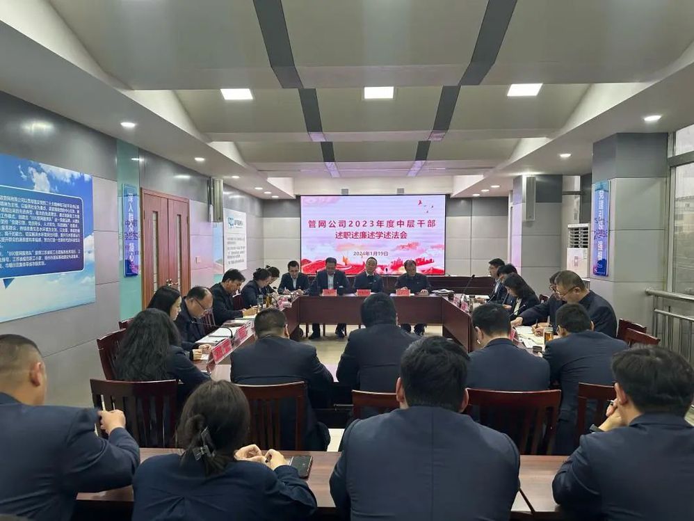 1月19日下午,管網(wǎng)公司組織召開(kāi)2023年度中層干部述職述廉述學(xué)述法會(huì),全體干部職工參加會(huì)議。