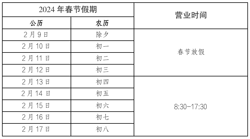 春節(jié)期間,瘦西湖北門(mén)營(yíng)業(yè)廳(平山堂東路35號(hào))和個(gè)園營(yíng)業(yè)廳(鹽阜東路10號(hào))正常營(yíng)業(yè)(8:00-17:00)。