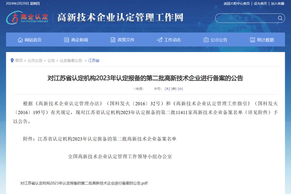 近日,全國(guó)高新技術(shù)企業(yè)認(rèn)定管理工作領(lǐng)導(dǎo)小組辦公室發(fā)布了《對(duì)江蘇省認(rèn)定機(jī)構(gòu)2023年認(rèn)定報(bào)備的第二批高新技術(shù)企業(yè)進(jìn)行備案的公告》,管網(wǎng)公司下屬揚(yáng)州城控排水管網(wǎng)運(yùn)維有限公司成功通過認(rèn)定,并榮獲“國(guó)家高新技術(shù)企業(yè)”。